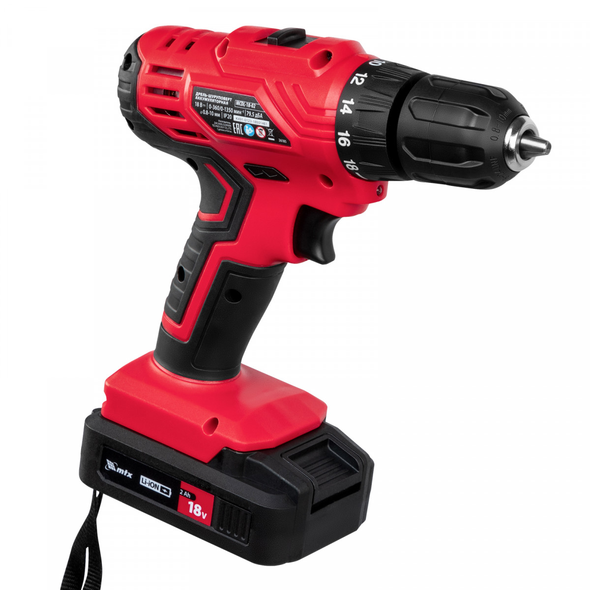 Дрель-шуруповерт аккумуляторная MCDL-18-02, Li-Ion, 18 В, 2 акк. MTX