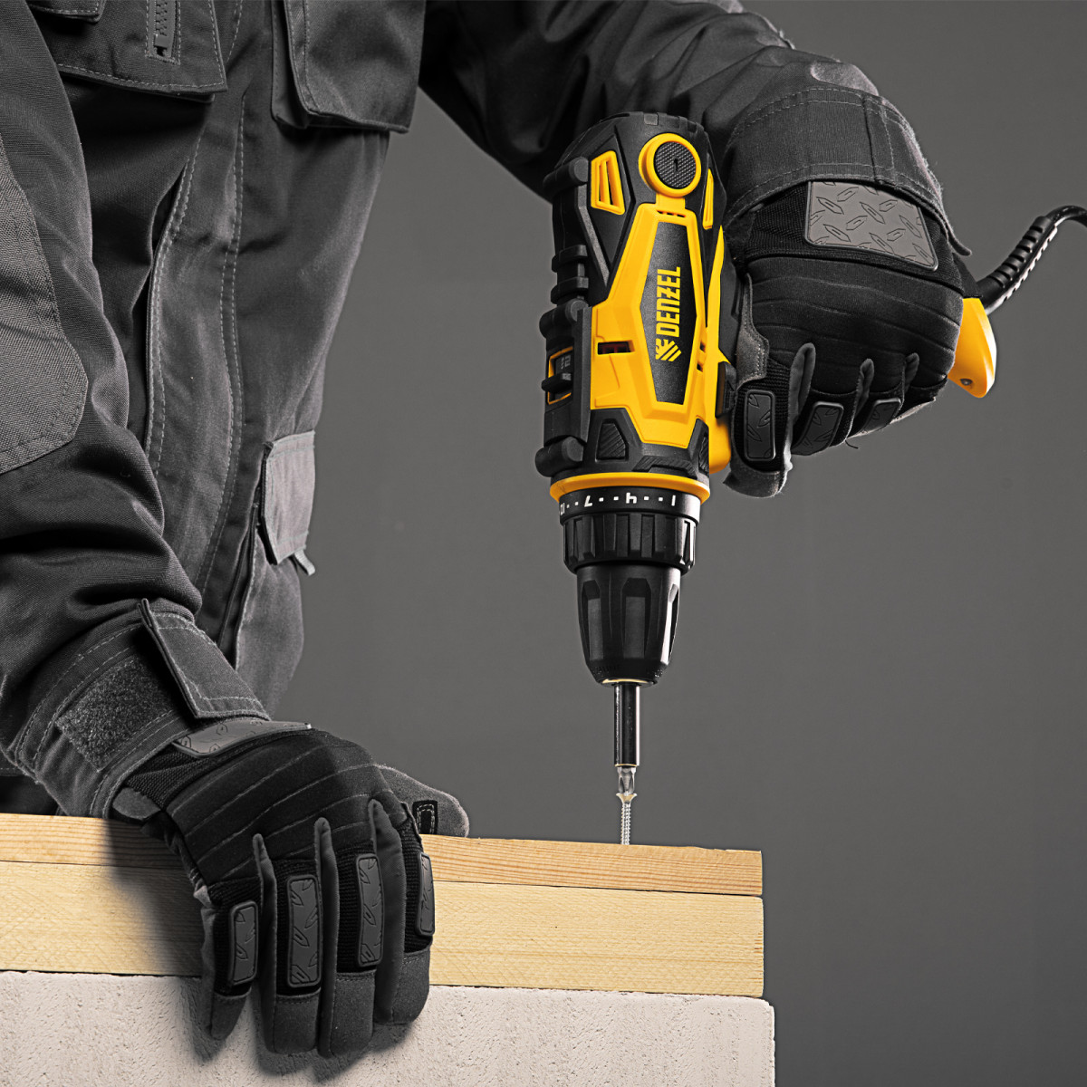 • Легкая смена оснастки — быстрозажимной одномуфтовый патрон позволяет снимать и устанавливать биты и сверла одной рукой.