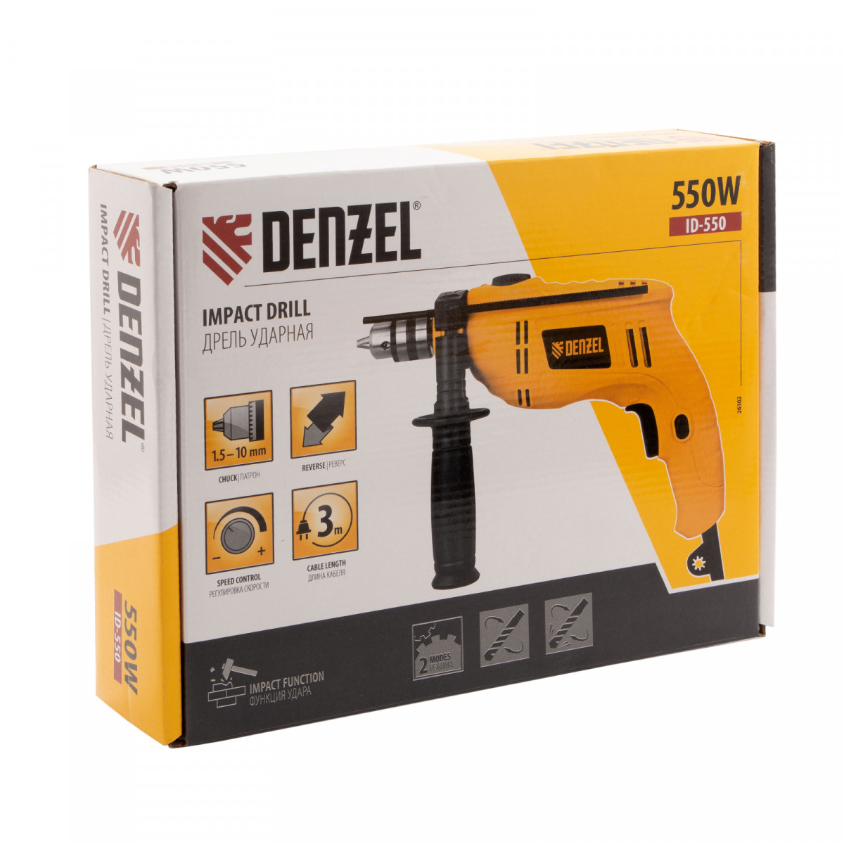Дрель ударная ID-550, 550 Вт, 0-2900 об/мин, 46400 уд/мин Denzel