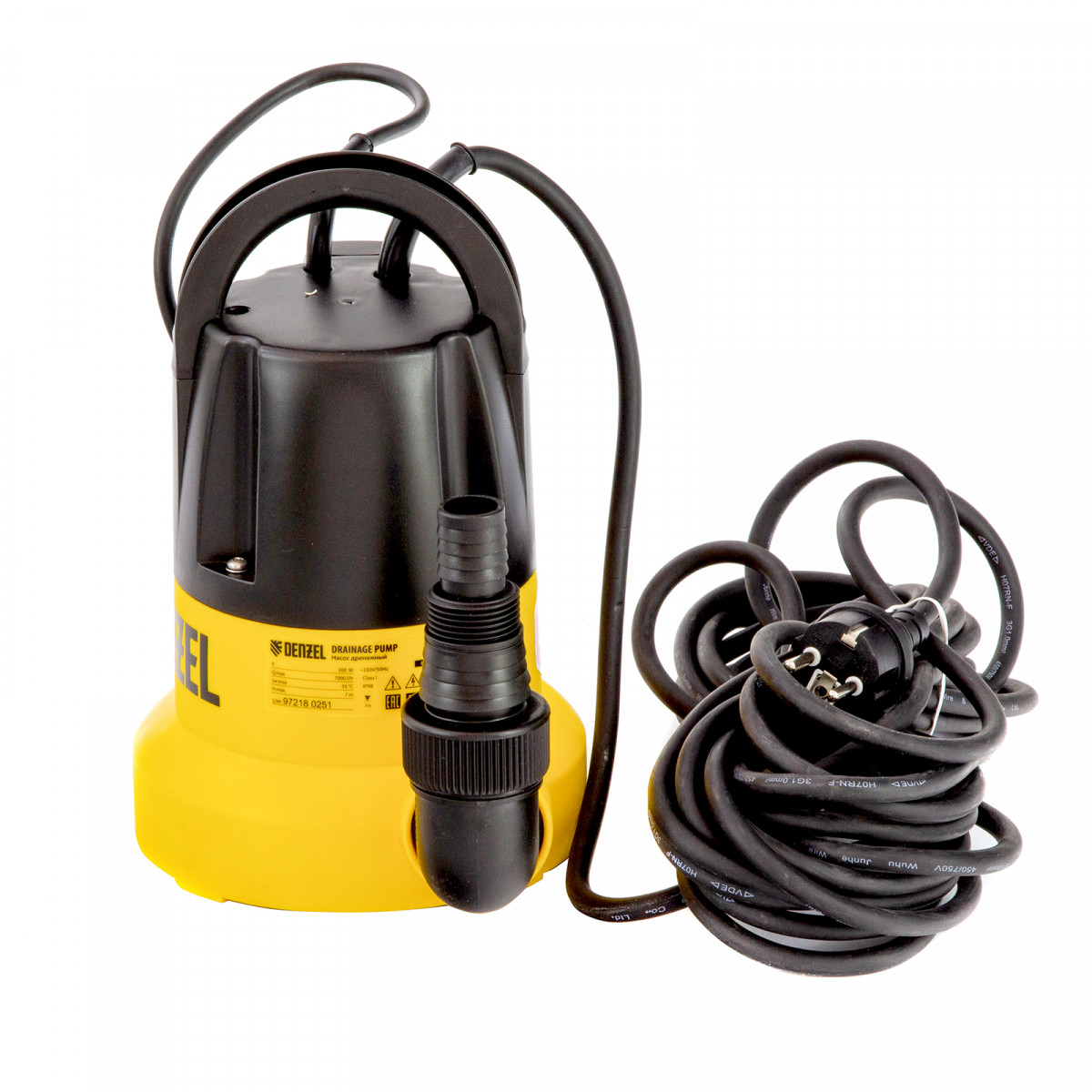 Дренажный насос DP500E, 500 Вт, подъем 7 м, 7000 л/ч Denzel