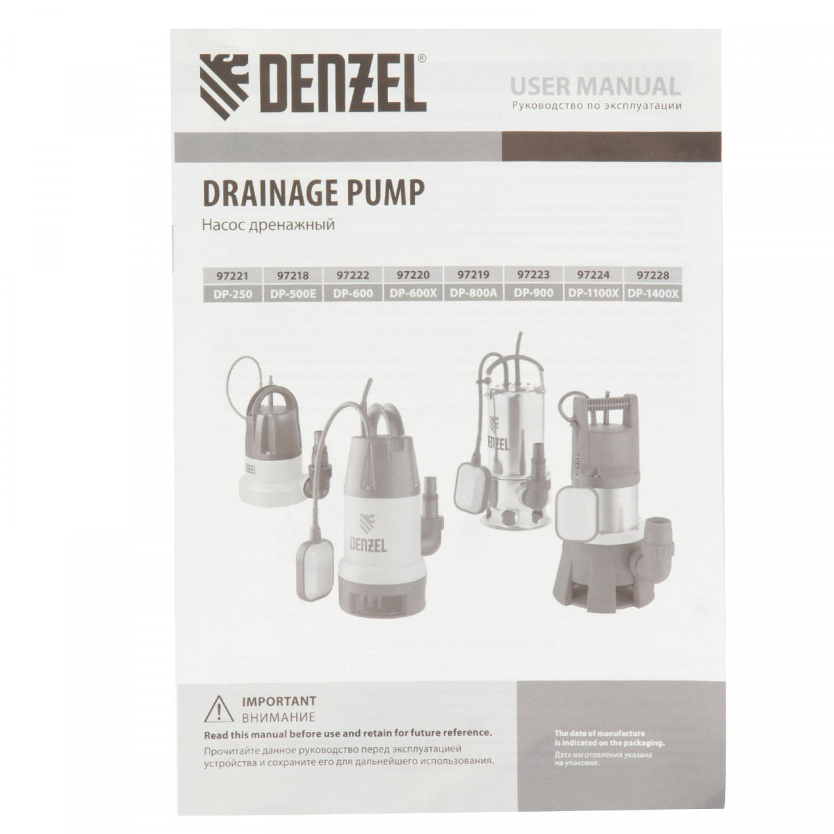 Дренажный насос Denzel DP500E 97218 мощностью 500 Вт обеспечивает высоту подъема 7 м и производительность 7000 л/ч. Используется для подачи чистой воды из колодцев и организации систем полива.
