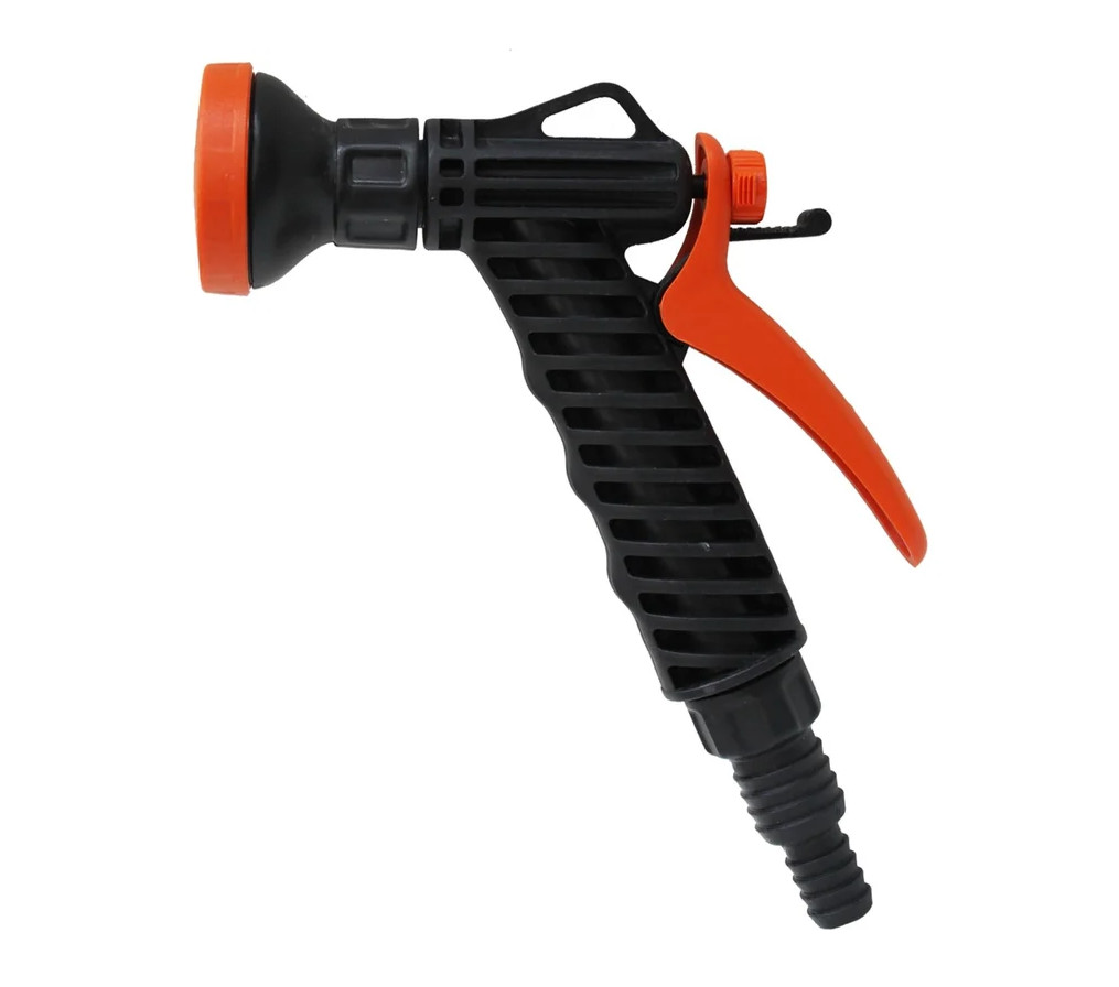 Поливочный душ-пистолет с фиксатором применяется для полива и орошения растений и кустарников, промывки садовых емкостей, а также мелкомасштабной уборки инвентаря.