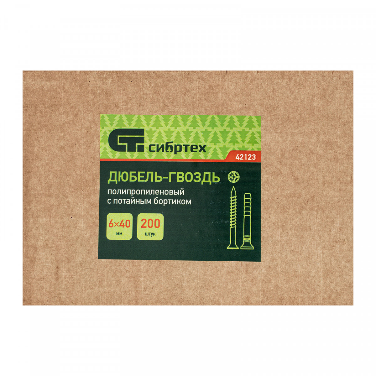 Дюбель-гвоздь полипропиленовый с потайным бортиком 6 х 40 мм, 200 шт Сибртех