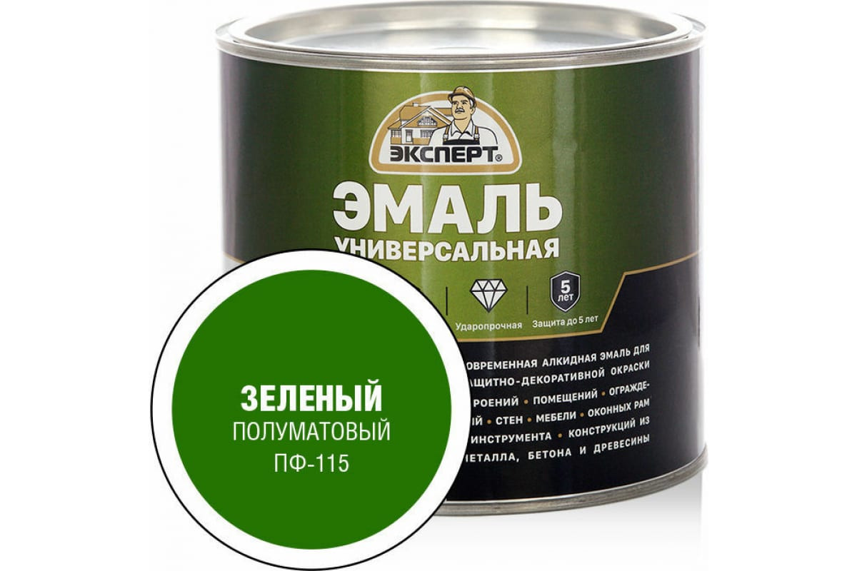 Эмаль ПФ-115 универсальная алкидная ЭКСПЕРТ полуматовая зеленая 1,8кг