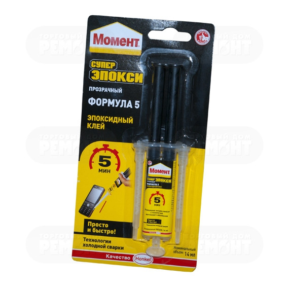 Универсальный эпоксидный клей "Момент Супер Эпокси Формула 5" в шприце обеспечит вас комфортным, прочным и невероятно быстрым склеиванием при работе практически с любыми материалами. Благодаря удобной упаковке в виде шприца, оснащенного уникальной насадкой-миксером, клей можно точно дозировать и более аккуратно и равномерно наносить на поверхность, что способствует экономичности. Компоненты смешиваются внутри насадки по мере выдавливания из шприца. Вам не придется самостоятельно смешивать их с применением дополнительных инструментов!