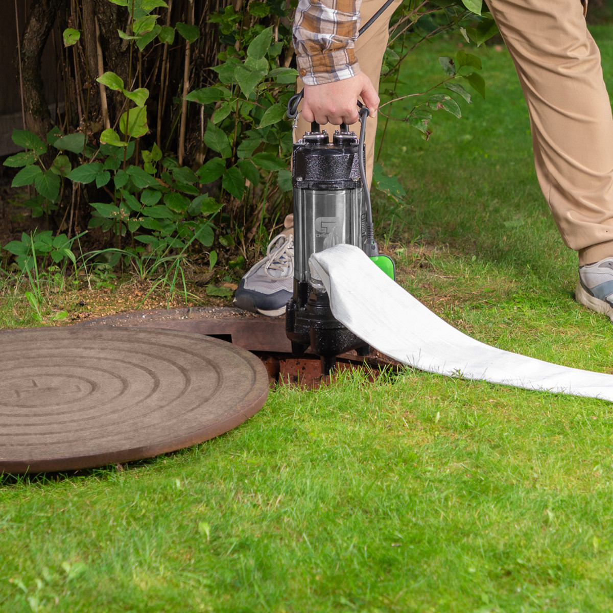 - Быстрый монтаж — с помощью троса насос необходимо опустить в колодец на глубину до 5 м и установить в вертикальном положении.