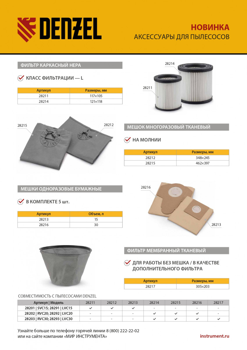 Каркасный складчатый HEPA-фильтр Denzel 28211 совместим со строительными пылесосами SVC15 (28201), LVC15 (28291). Устанавливается на корпус фильтра пылесоса и используется для проведения сухой уборки. Имеет класс фильтрации L, успешно справляется с частичками лака, краски, искусственного камня и т.п.