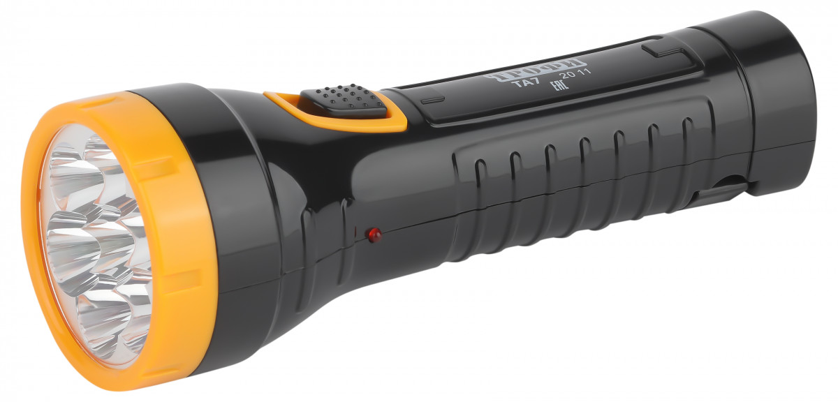Трофи ТА7 - компактный аккумуляторный LED-фонарь с 7 белыми светодиодами, двумя режимами работы и прямой подзарядкой от электросети 220 В. Изготовлен из ударопрочных материалов. Имеет ёмкий аккумулятор, который обеспечивает 6 часов непрерывной работы после одного полного заряда. Ровный яркий свет данного фонаря обеспечивают 7 белых светодиодов. Современные LED-элементы не перегорают, не тускнеют с течением времени и не нуждаются в замене в течение всего срока службы. Пользователь имеет возможность выбирать нужный режим освещения - максимальная яркость (горят все 7 LED-элементов) или эконом-режим (горят 4 LED-элемента). Оптимальная дальность светового луча - 45 метров. Фонарь удобен в использовании. Эргономичная форма корпуса: устройство отлично ложится в руку, кнопка включения / переключения режимов находится прямо под большим пальцем и имеет рифлёное противоскользящее покрытие. Подзарядка осуществляется напрямую от электросети 220 В. Ёмкий аккумулятор 500 мАч обеспечивает работу устройства в течение 7 часов.
