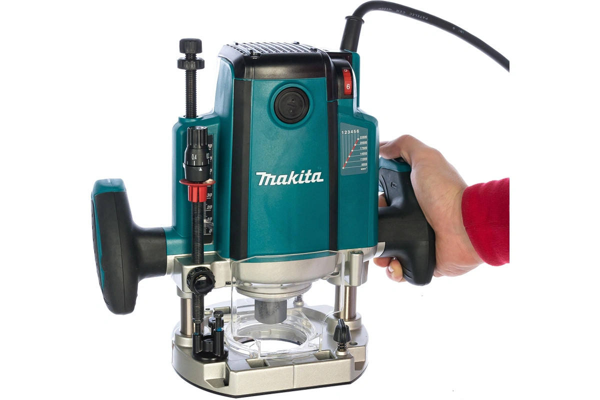 Ручной фрезер Makita RP2301FCX предназначен для снятия пазов и фасок, подравнивания кромок, профилирования и прочих работ по дереву. Скорость вращения шпинделя регулируется с помощью колесика на рукоятке, что позволяет легко и просто настраиваться под конкретный материал и тип работ. Функции плавного пуска и тормоза двигателя способствуют аккуратной работе и минимизируют риск повреждения обрабатываемого материала.