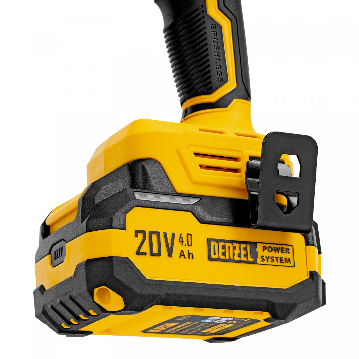 • Универсальность — аккумулятор Li-Ion емкостью 4 А·ч совместим со всеми инструментами единой платформы Denzel Power System 20V.
