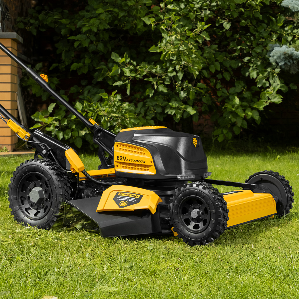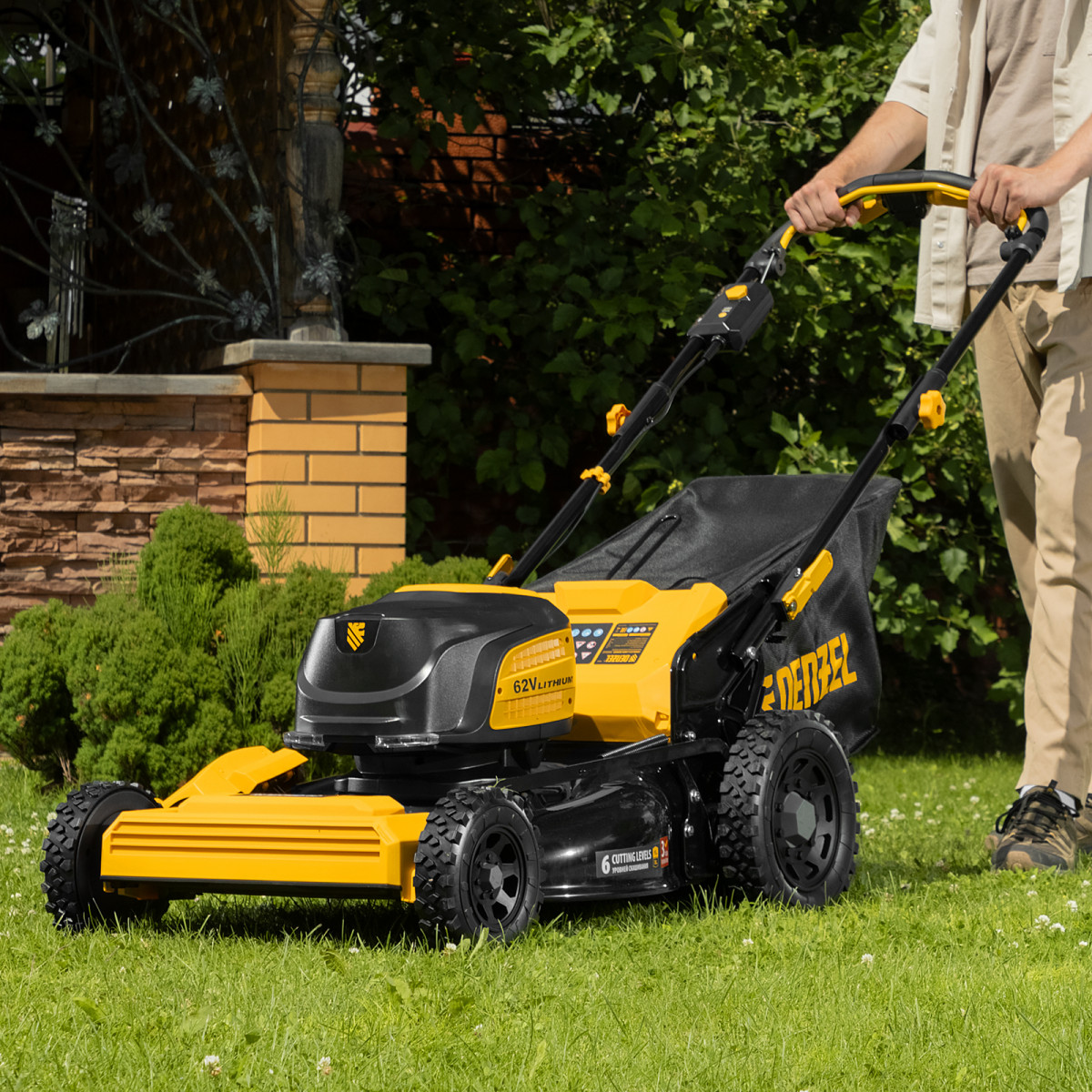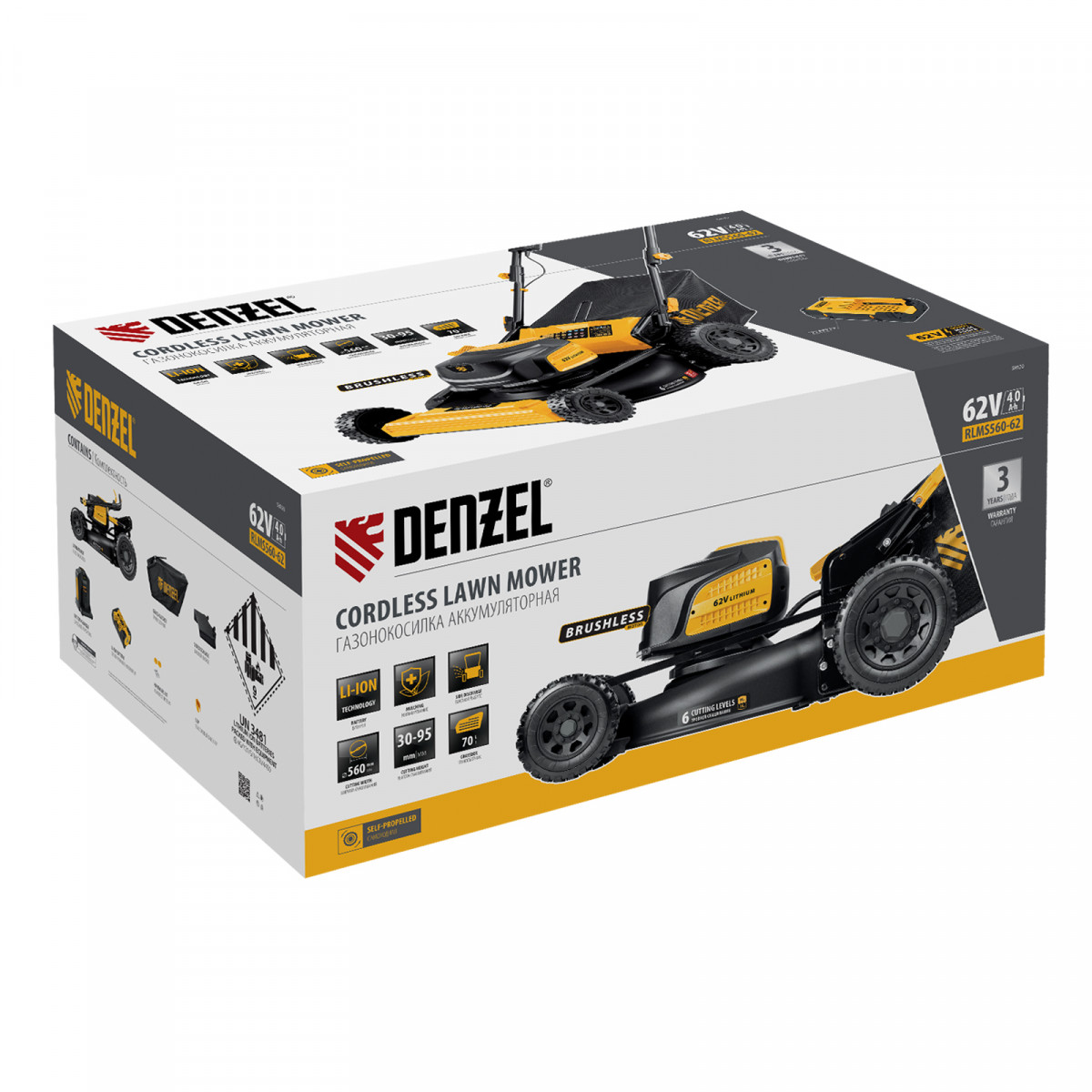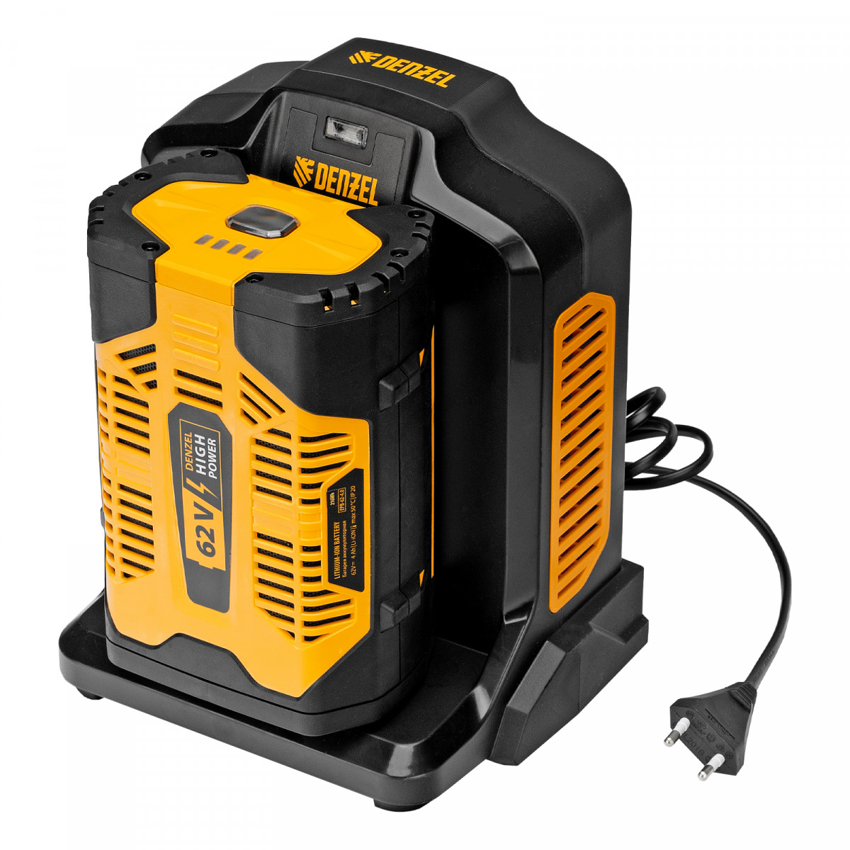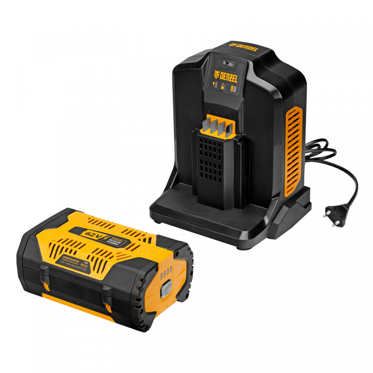 Инновационная аккумуляторная платформа Denzel High Power 62V обеспечивает высокую производительность и продолжительную работу.