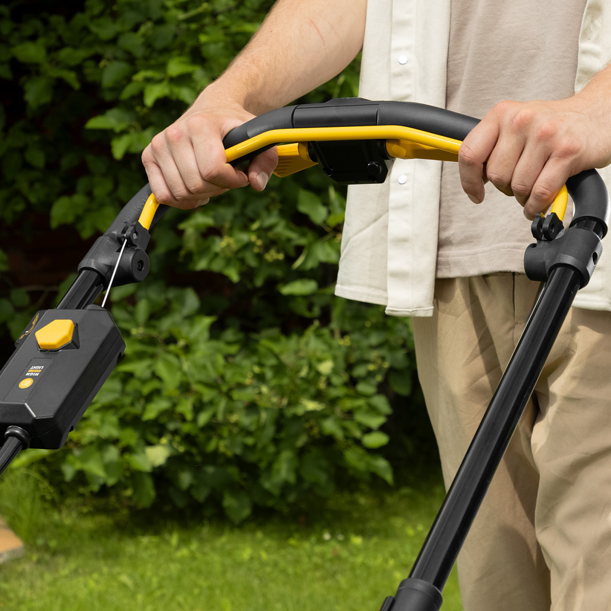 • 6 уровней скашивания — высота травяного покрова регулируется одним рычагом в диапазоне 30-95 мм.