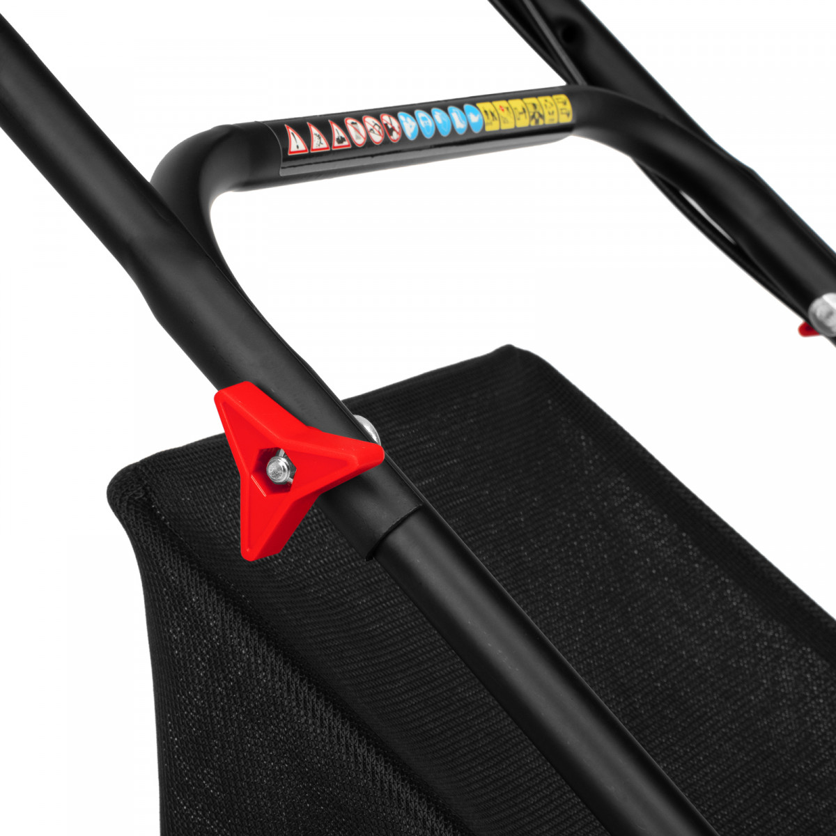 • Удобная эксплуатация и хранение — усиленная конструкция рукоятки позволяет комфортно управлять газонокосилкой, тканевый травосборник не утяжеляет конструкцию, а в сложенном состоянии не занимает много места.