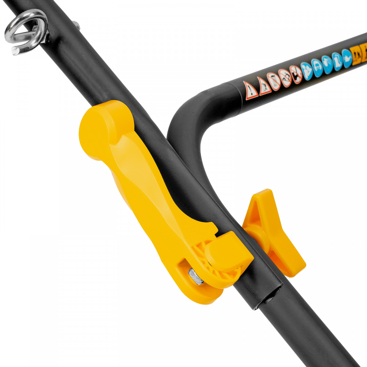 - Простая регулировка высоты скашивания — достаточно установить рычаг в нужное положение.