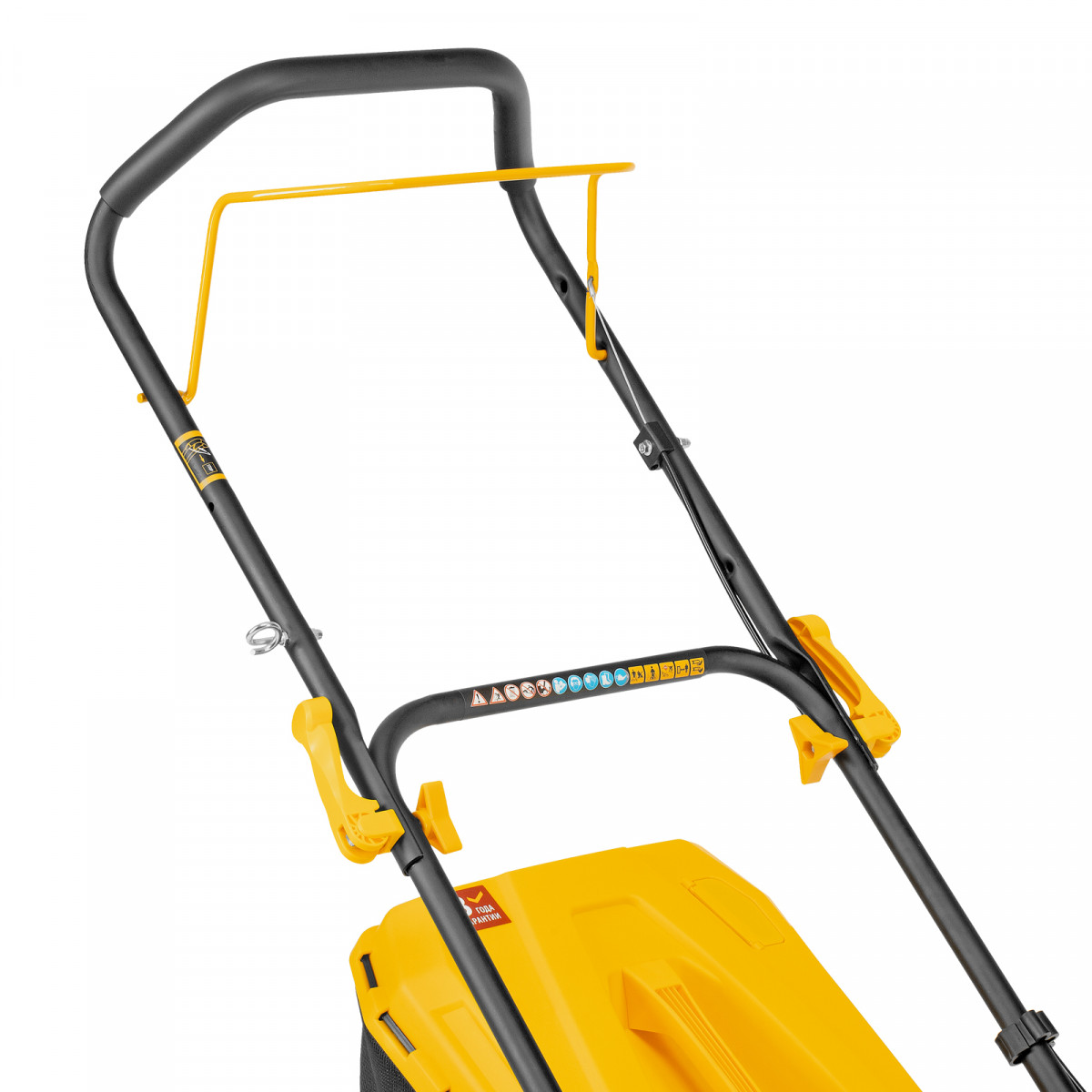 - Контроль количества травы в травосборнике — специальный индикатор позволяет оценить степень его наполненности.