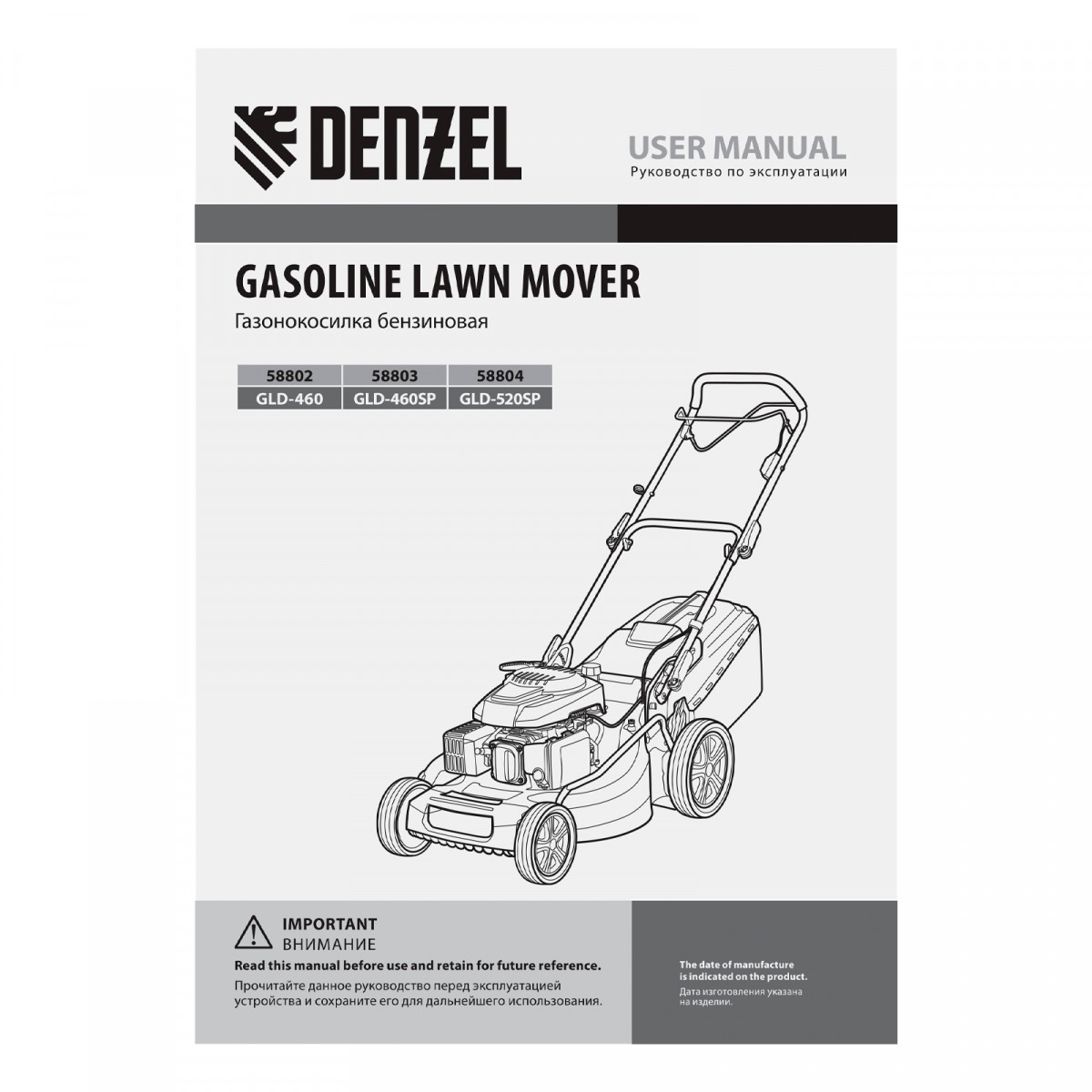 - Высокое качество сборки — мощный и надежный двигатель Denzel оснащен свечой зажигания BOSCH/NGK.