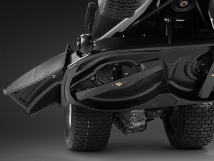 Дека шириной 1070 мм обеспечивает высоту стрижки от 30 до 90 мм и имеет 6 положений регулировки. Газонокосильная дека с боковым выбросом - отличное решение для кошения больших открытых площадей. Подобная конструкция обладает рядом преимуществ: • повышает комфорт при работе, т.к. скошенная трава ложится в сторону и не приминается колесами машины; • повышает качество стрижки при кошении вокруг деревьев, вдоль бордюров и ограждений. Также ею хорошо пользоваться для кошения травы вдоль обочин дорог и декоративных дорожек.