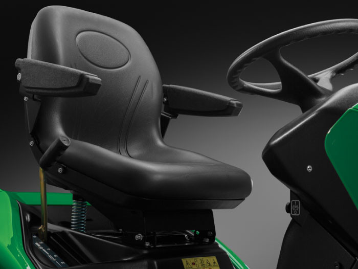Для повышения вашего комфорта конструкторы уделили особое внимание эргономике. Все органы управления удобно размещены на передней панели: счетчик моточасов, рычаг плавного изменения скорости, включение привода деки и системы освещения. Стояночный тормоз приводится в действие простым нажатием на кнопку.
