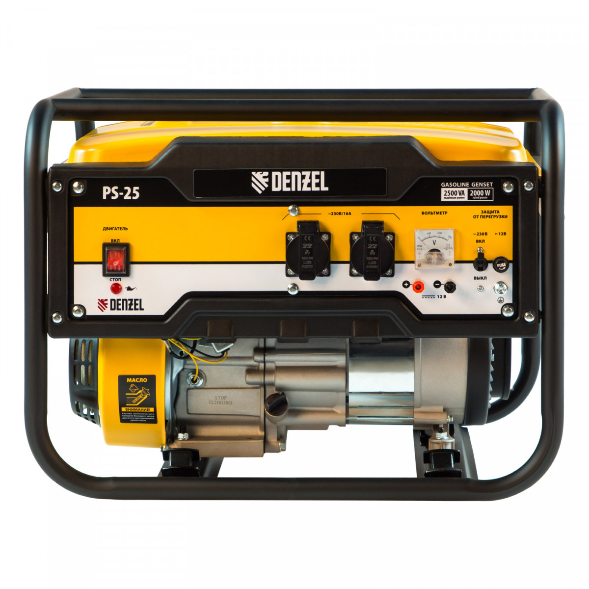 Генератор бензиновый PS 25, 2.5 кВт, 230 В, 15 л, ручной стартер Denzel