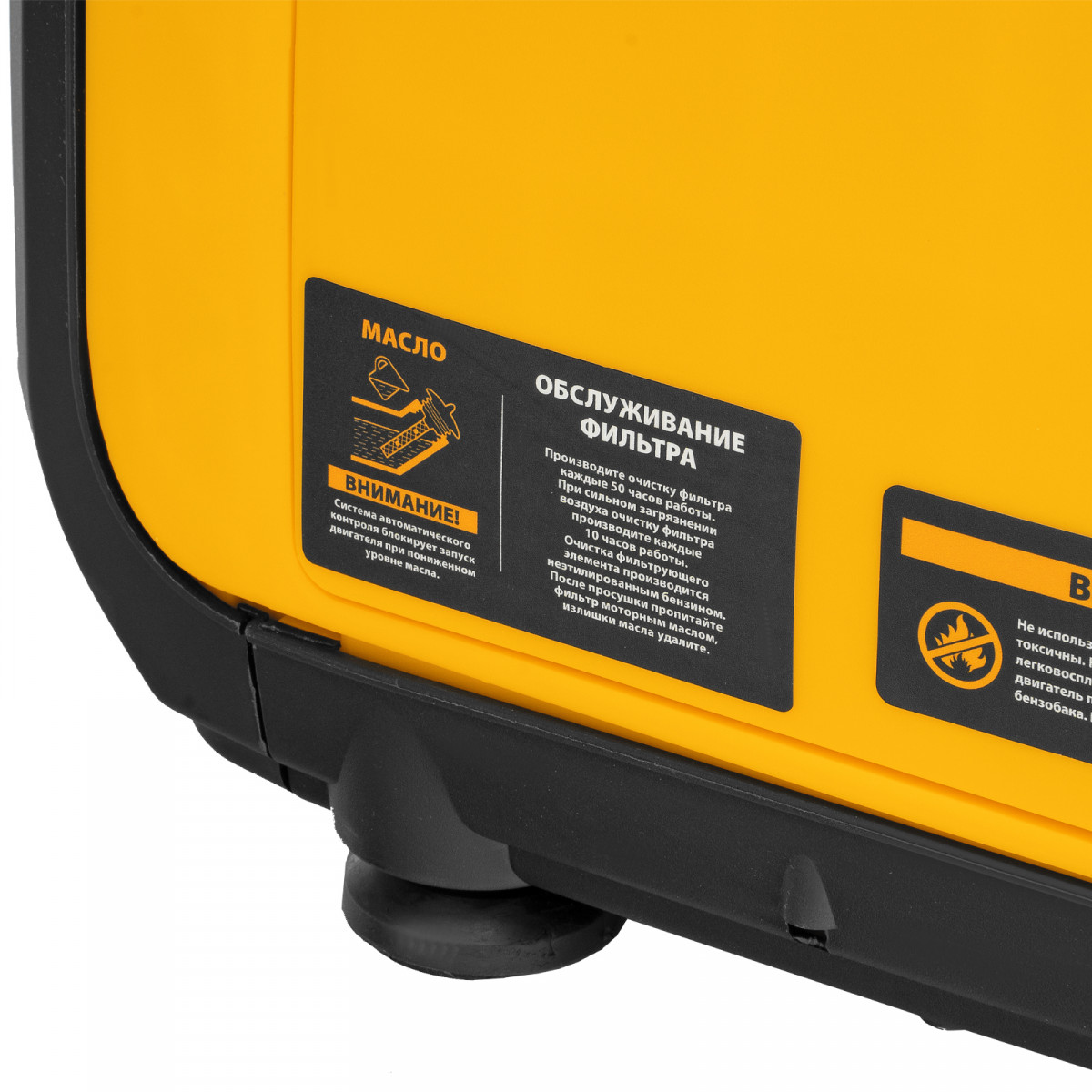 • Визуальный контроль — индикаторы на передней панели информируют о работе генератора, недостаточном уровне масла и о перегрузке.