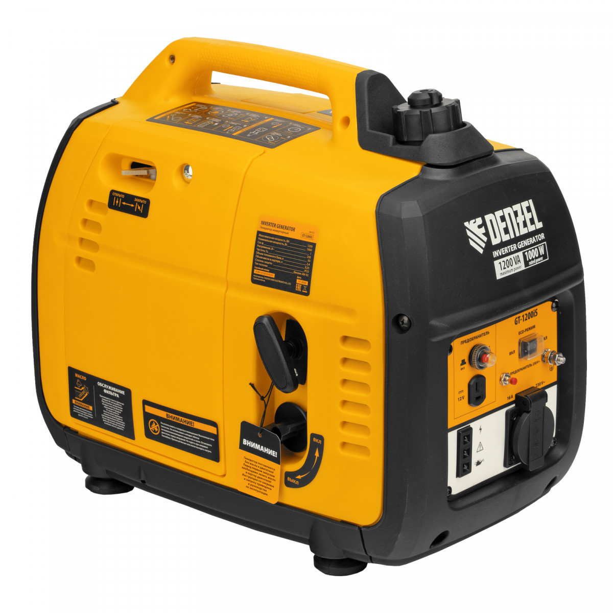 Генератор инверторный GT-1200iS, 1.2 кВт, 230 В, бак 2.4 л, закрытый корпус, ручной старт Denzel