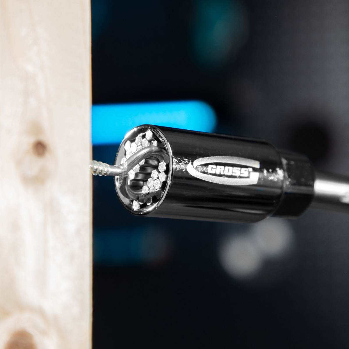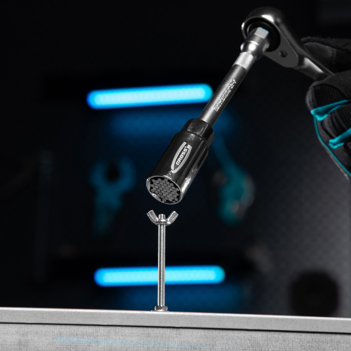 Хромированная торцевая многоразмерная головка Gross 13191 из стали CrV-группы под квадрат 3/8″ применяется для крепежных работ с болтами и гайками размером 6-21 мм. Универсальная многоразмерная конструкция позволяет заменить сразу несколько оснасток. Для работы с многоразмерной головкой понадобится переходник с квадратом 3/8″.