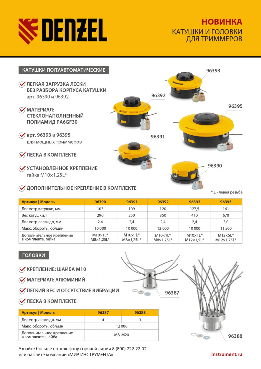 - Эффективность — компактная головка не утяжеляет конструкцию триммера и позволяет двигателю быстрее набирать обороты, а также значительно снижает вибрацию при работе.