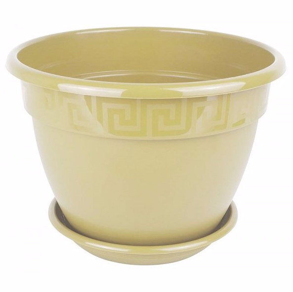 Горшок АНТИК 3,6 л., страна производитель - Россия, материал - пластик, настольный. Цвет - кремовый. С поддоном. Диаметр - 22 см.