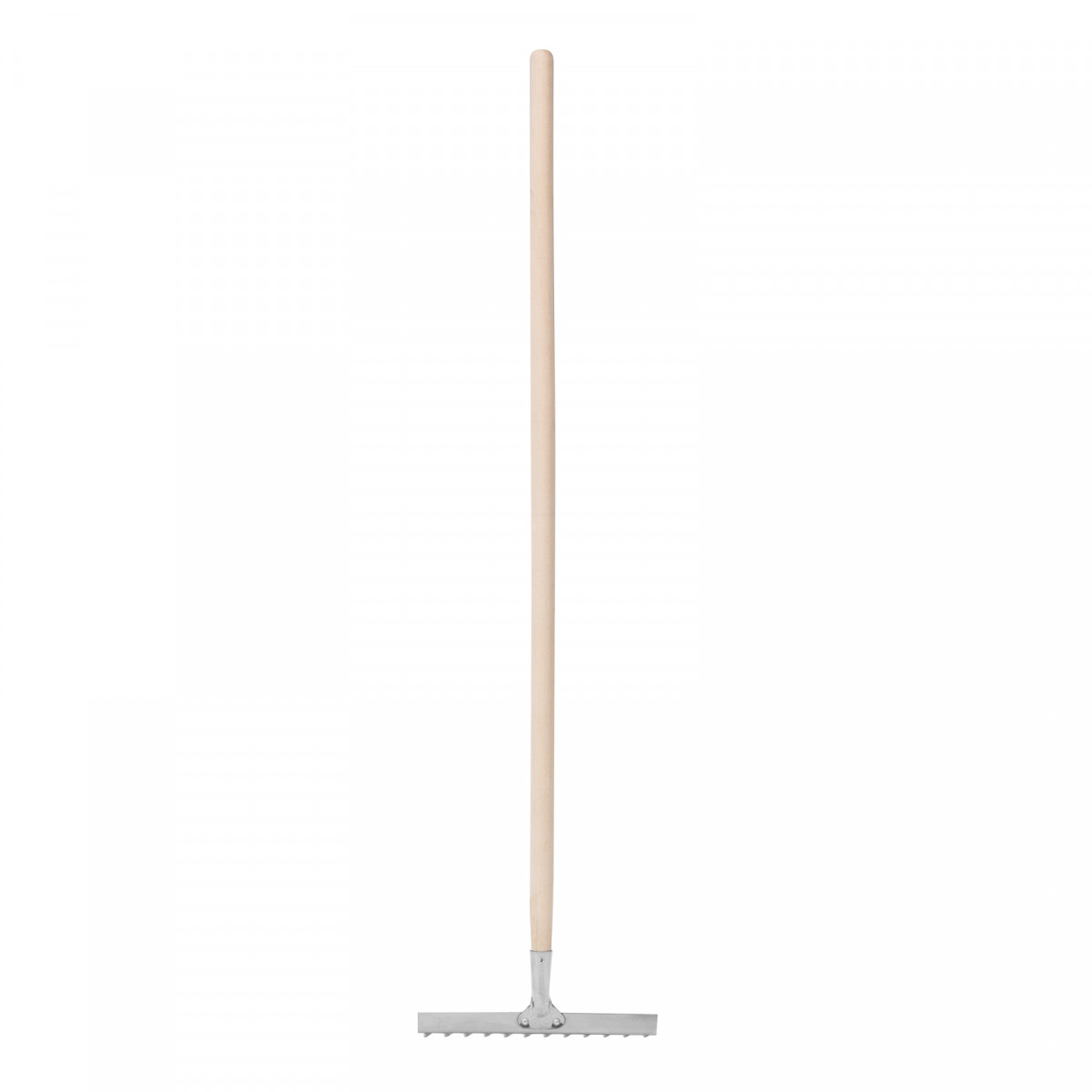 Грабли из нержавеющей стали Сибртех 61754 длиной 1300 мм, с гребенкой шириной 290 мм, с 12 витыми зубьями, служат для рыхления и выравнивания почвы и незаменимы для ухода за дачным участком. Грабли установлены на деревянный черенок и полностью готовы к использованию.