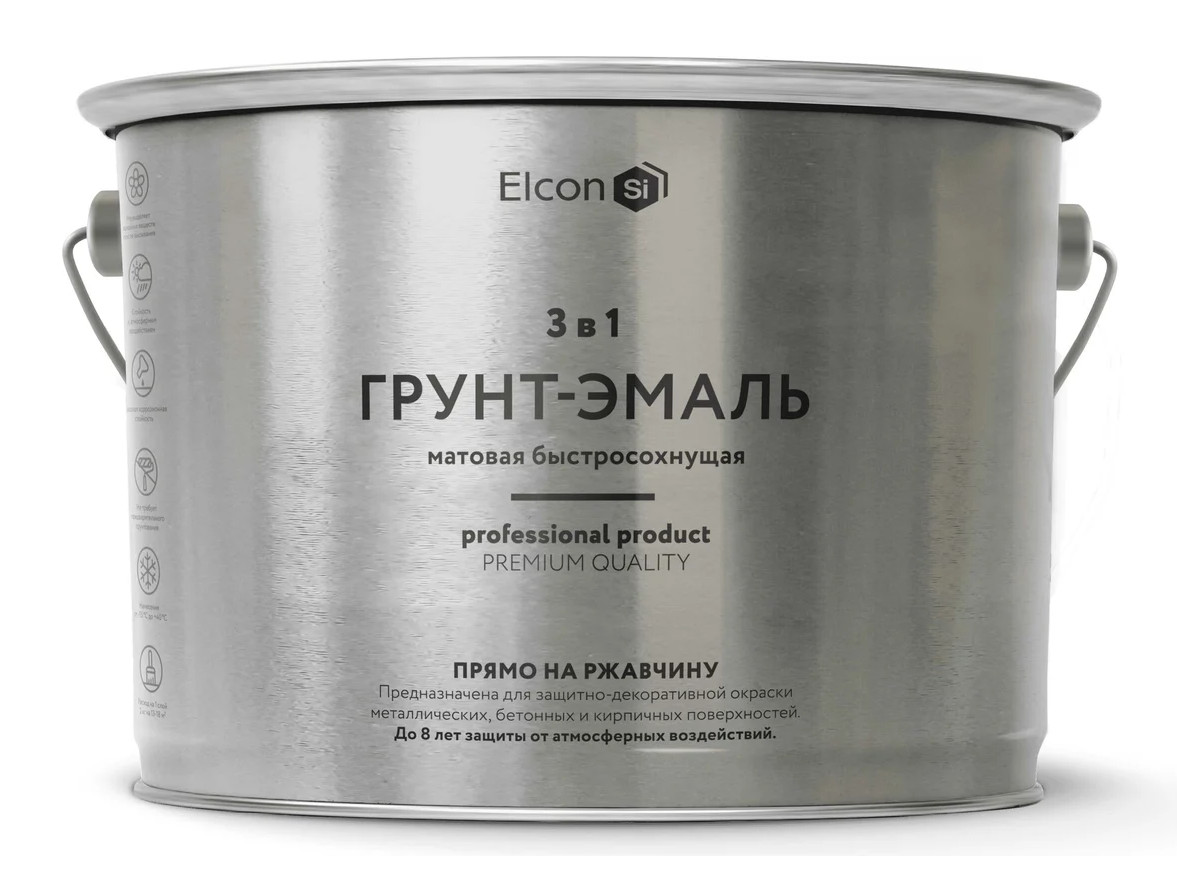 Грунт-эмаль 3 в 1 Elcon сочетает в себе функциональные свойства преобразователя ржавчины, антикоррозионного грунта и декоративной эмали.