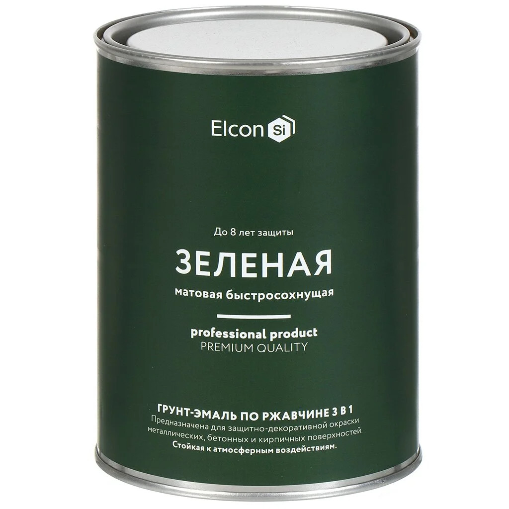 Быстросохнущая грунт-эмаль по металлу Elcon 3 в 1 по ржавчине, матовая, зеленая предназначена для нанесения как на чистые, так и на пораженные коррозией металлические поверхности с целью создания надежной антикоррозионной защиты металлоконструкций, оборудования, металлических изделий. Грунт-эмаль 3 в 1 Elcon сочетает в себе функциональные свойства преобразователя ржавчины, антикоррозионного грунта и декоративной эмали. Области применения: - Металлические изделия - Садовая мебель - Ворота - Заборы - Двери - Теплицы - Светильники - Скамьи - Оборудование.