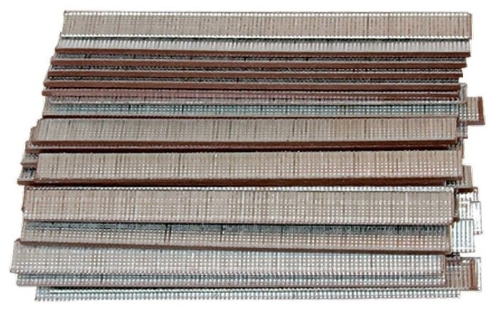 Изготовлены из углеродистой стали. Имеют никелированное покрытие. Предназначены для крепления материала к поверхностям с помощью пневматического нейлера.