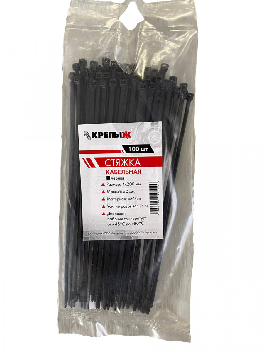 Хомут нейлоновый 4*200 мм черный КРЕПЫЖ (100шт)
