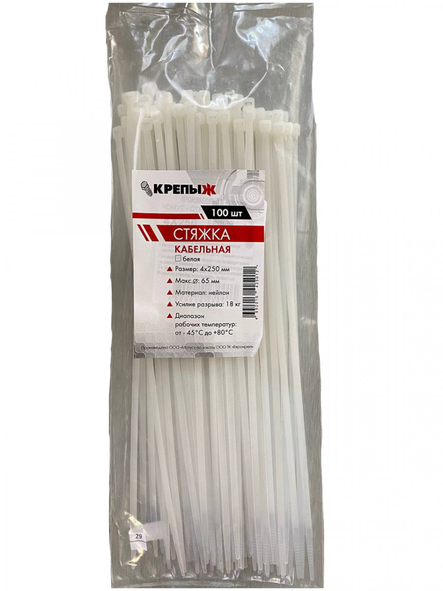 Хомут нейлоновый 4*250 мм белый КРЕПЫЖ (100шт)