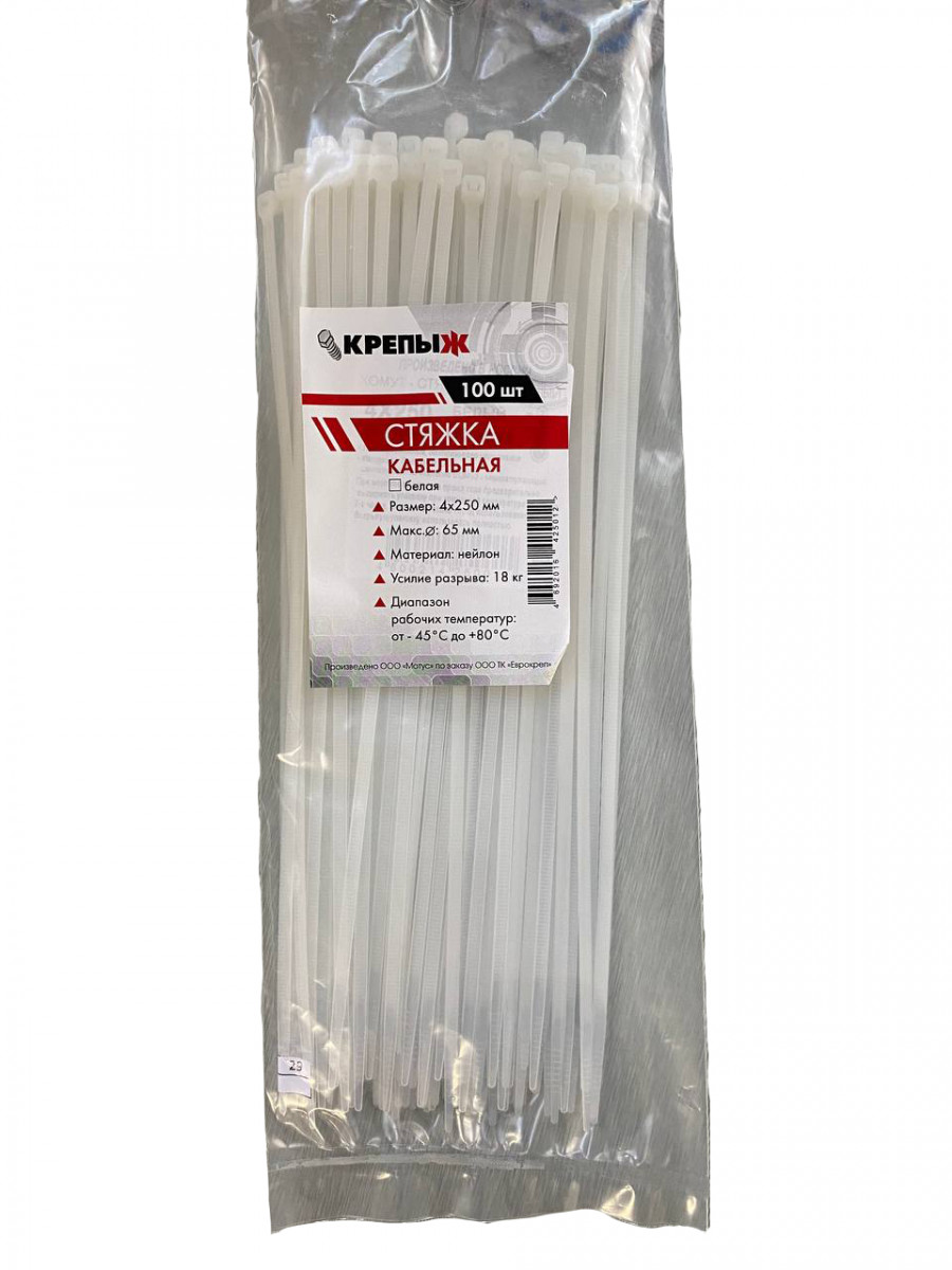 Хомут нейлоновый 4*250 мм черный КРЕПЫЖ (100шт)