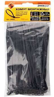 Хомут пластиковый 3.6Х150 черный Энкор (100 шт)