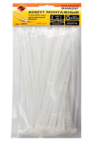 Хомут пластиковый 3.6Х200 белый Энкор (100 шт)
