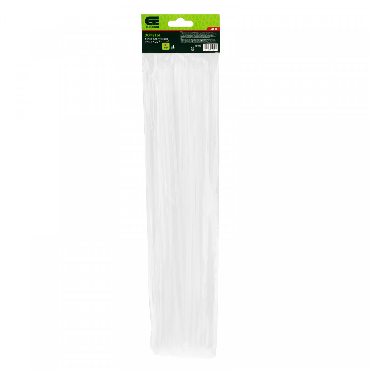 Хомуты, 370 x 3.6 мм, пластиковые, белые, 100 шт Сибртех