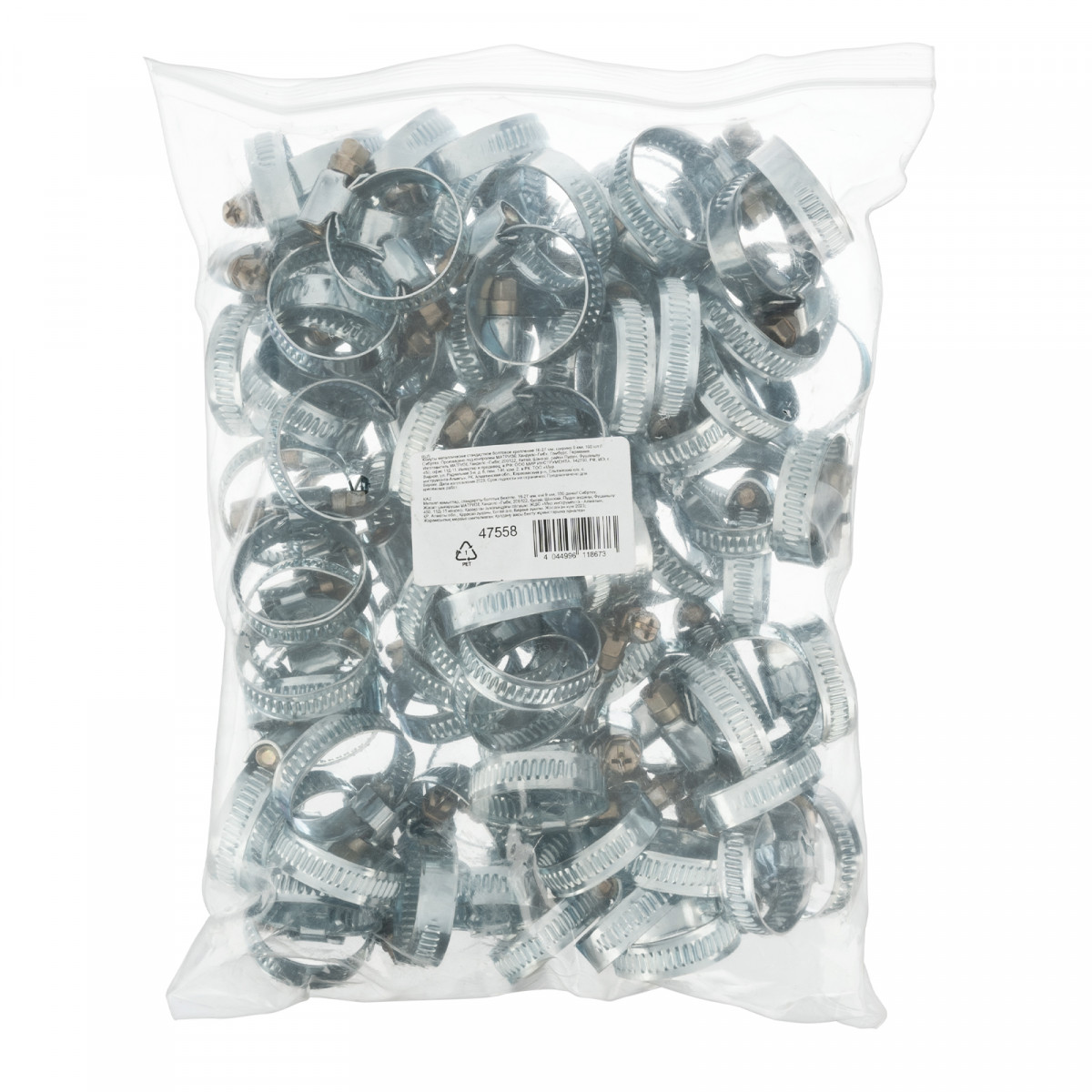 Металлические хомуты Сибртех 47558 со стандартным болтовым креплением, диаметром охвата 16-27 мм и шириной 9 мм, 100 шт. в упаковке, — крепежные элементы для соединения труб и шлангов. Обеспечивают плавную регулировку диаметра обжима, подходят для многократного использования. Строительные стяжки применяют для монтажа водопроводных, отопительных, вентиляционных систем.