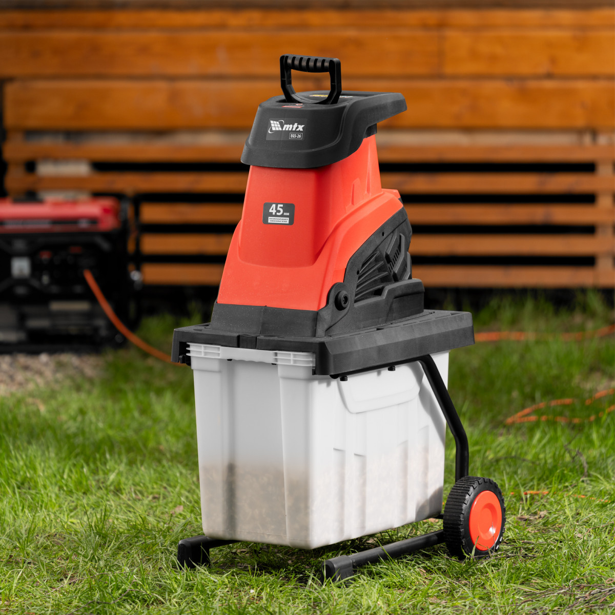 Электрический садовый измельчитель MTX EGS-26 59712 мощностью 2600 Вт предназначен для измельчения веток диаметром до 45 мм. Такой способ облегчает их утилизацию, а также позволяет использовать в качестве удобрения или мульчи. Измельчитель незаменим на дачном участке.