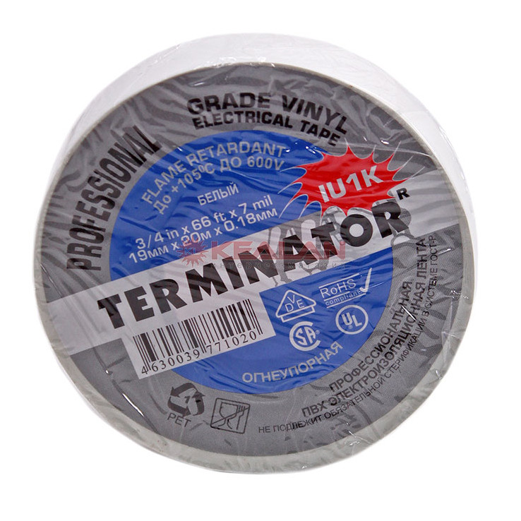 Изолента 19 мм/20 м белая Терминатор огнеупорная