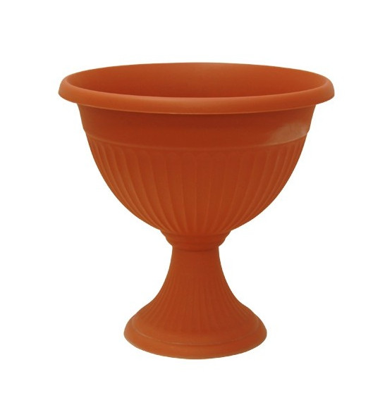 Кашпо-вазон пластиковое 12,0л Ливия низкий на ножке терракот