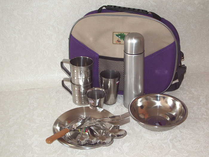 Комплектация:Кружка – 2 шт.Стакан 0,25 – 2 шт.Стопка – 2 шт.Миска глубокая – 2 шт.Тарелка – 2 шт.Вилка – 2 шт.Ложка столовая – 2 шт.Ложка чайная – 2 шт.Нож – 1 шт.Термос 0,5 – 1 шт.
