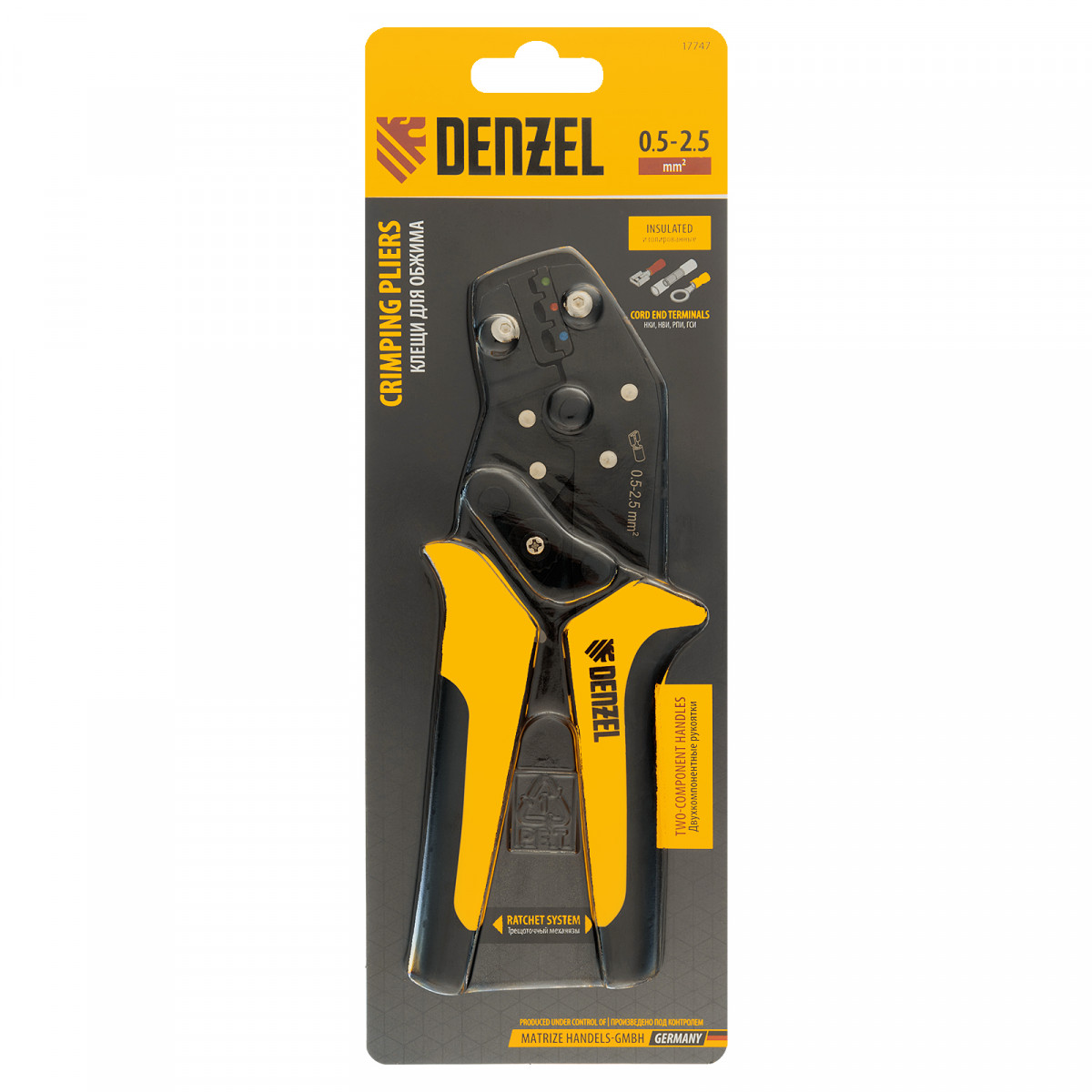 Клещи для обжима изолир. наконечников НКИ и НВИ, разъемов РПИ, гильз ГСИ, 0,5 - 2,5 мм2 Denzel