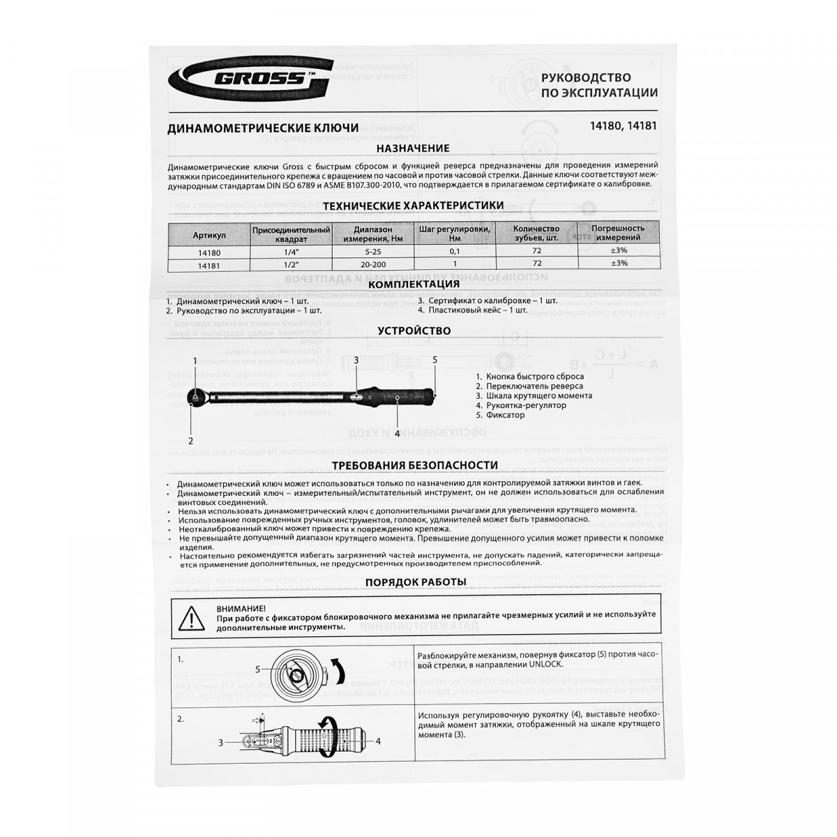 Динамометрический ключ Gross 14181 с посадочным квадратом 1/2", из стали CrV, используется для закручивания резьбового крепежа с точно заданным усилием в диапазоне от 20 до 200 Нм. Оснащен индикатором настройки крутящего момента, обладает повышенной точностью, погрешность составляет +-3%. Момент силы контролируется щелчковым механизмом, что облегчает работу в условиях отсутствия визуального контроля. Инструмент применяется для сборки и ремонта техники, а также для обслуживания автомобилей.