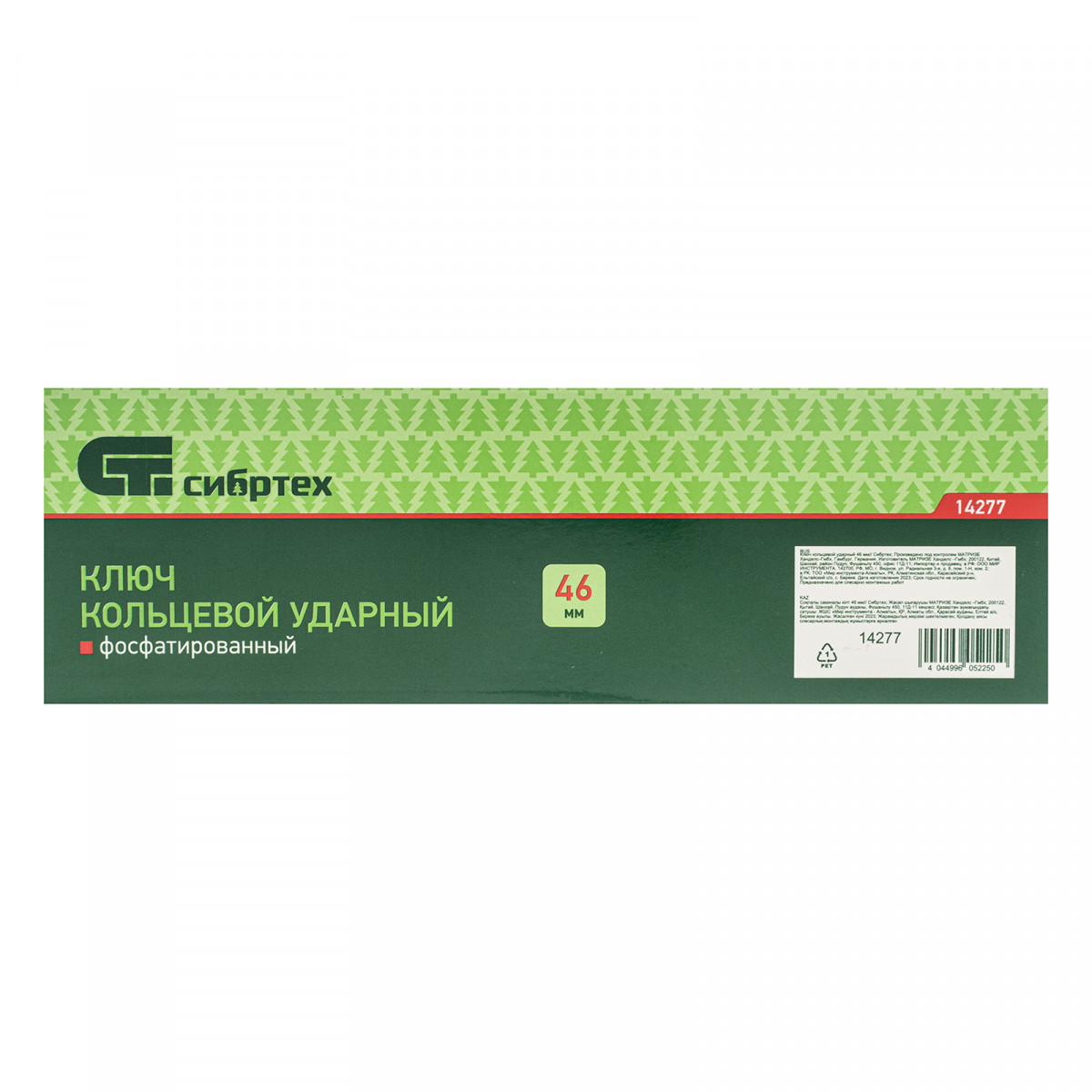 Ключ кольцевой ударный Сибртех 14277 позволяет откручивать и закручивать резьбовые соединения размером 46 мм. Благодаря 12-гранному профилю надежно удерживает головку крепежа. Удобен для работы в ограниченном пространстве — для перестановки его достаточно повернуть на 30°. Инструмент применяется в слесарных мастерских, будет полезен во время ремонта, а также для решения бытовых задач.