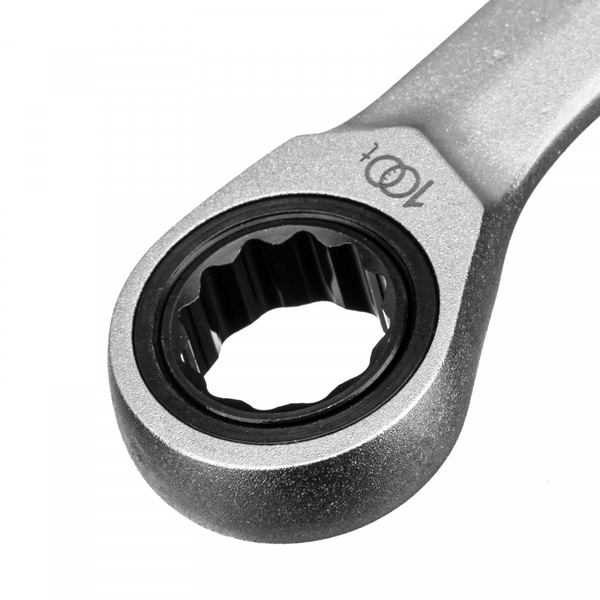 • Храповый механизм оснащен 100 зубцами, что обеспечивает плавность хода инструмента (шаг трещотки всего 3,6 градусов) и делает его удобным для работы в ограниченном пространстве.