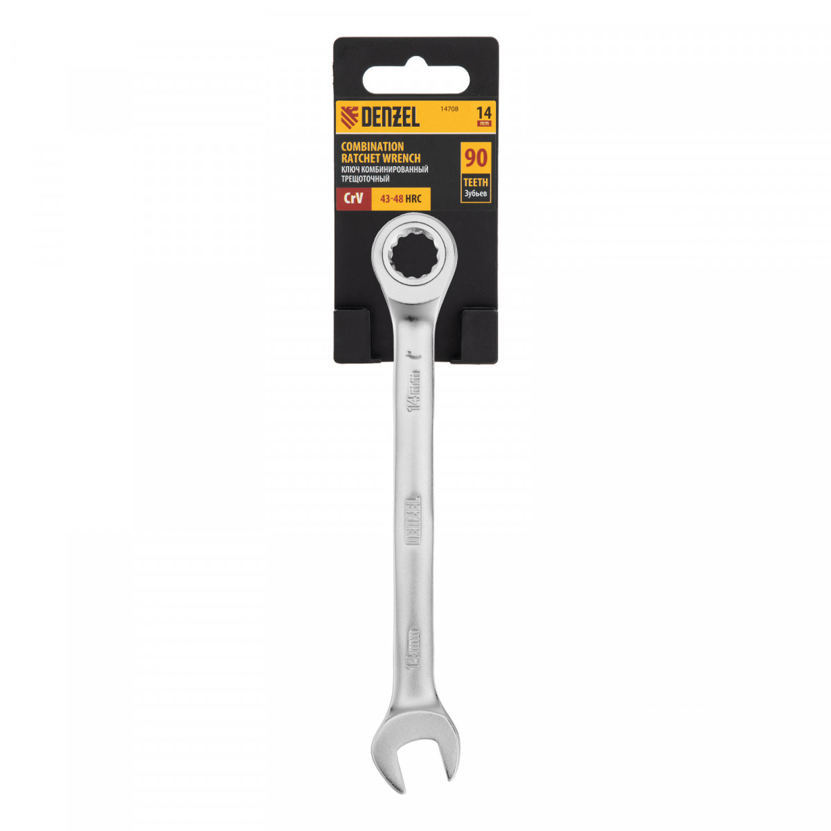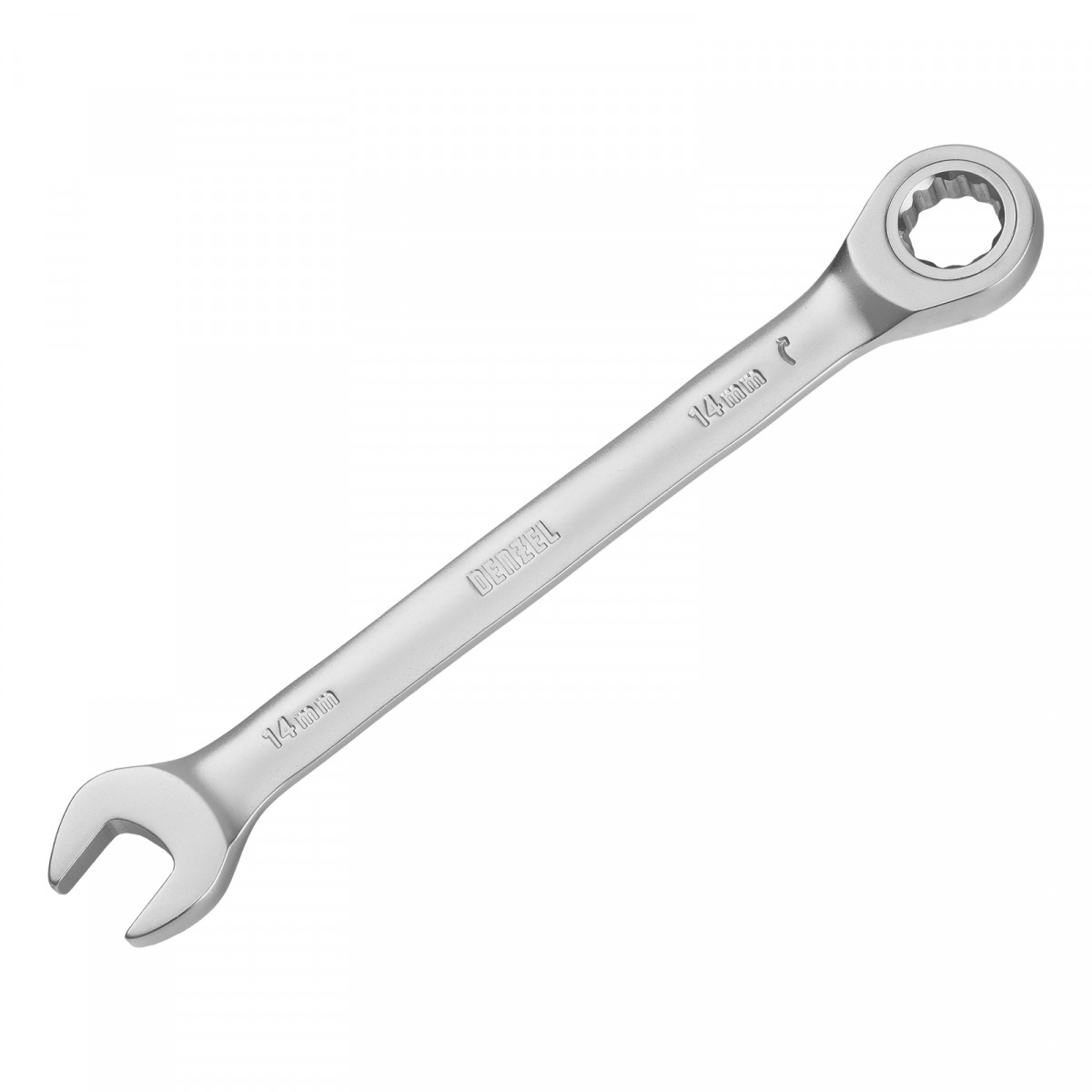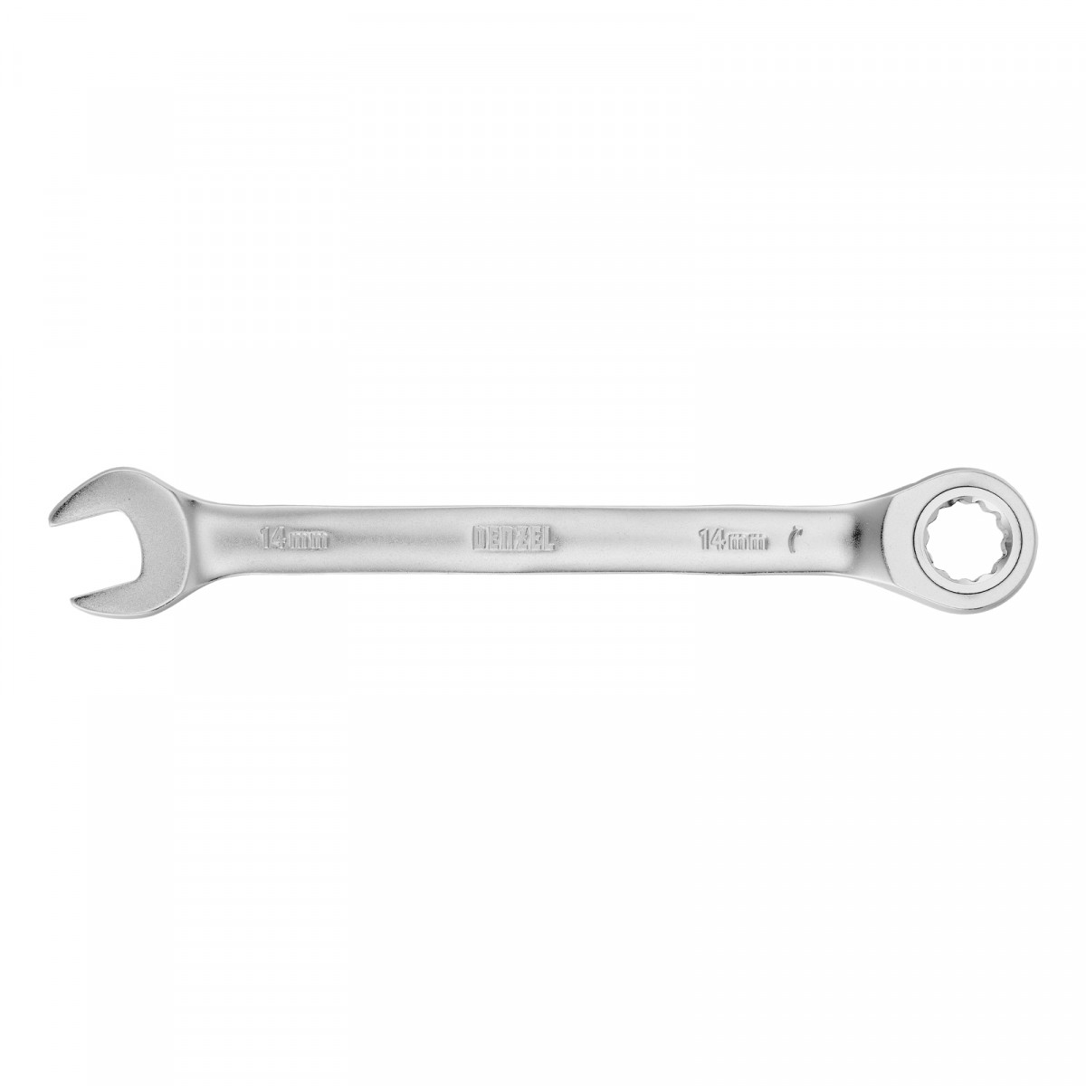 Ключ комбинированный трещоточный, 14 мм, CrV, матовый хром Denzel