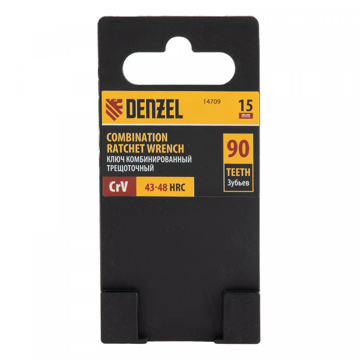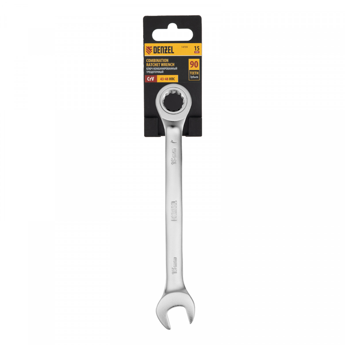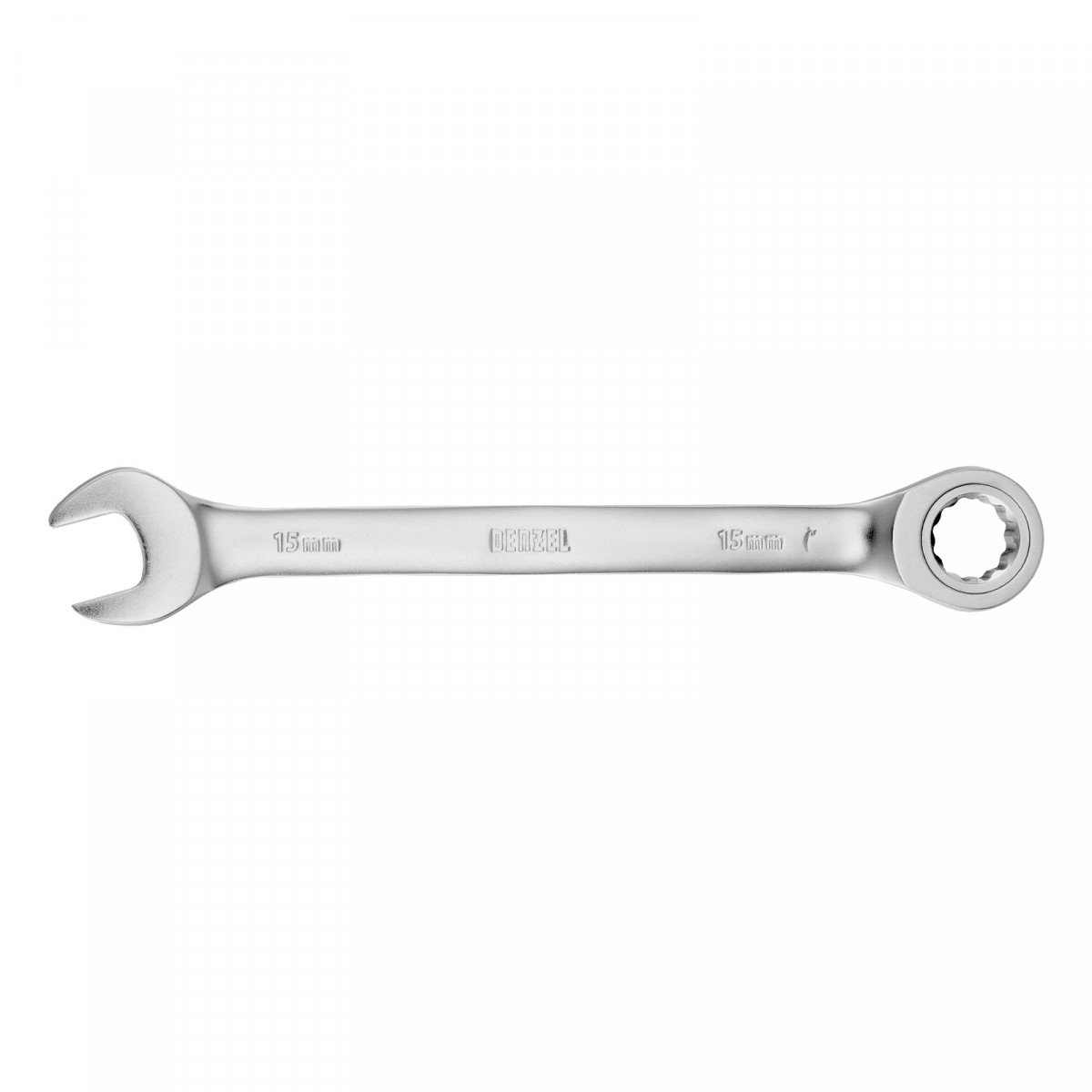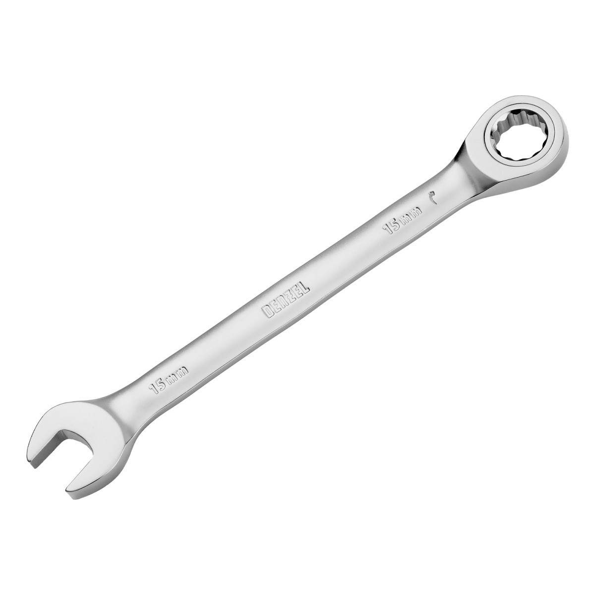 Ключ комбинированный трещоточный, 15 мм, CrV, матовый хром Denzel