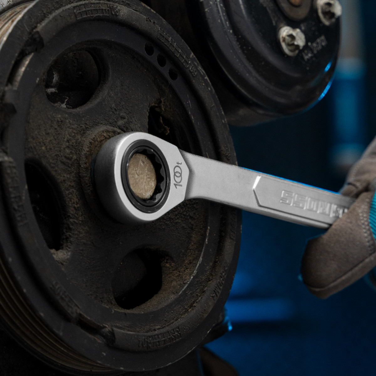 - Храповый механизм оснащен 100 зубцами, что обеспечивает плавность хода инструмента (шаг трещотки всего 3,6 градусов) и делает его удобным для работы в ограниченном пространстве.